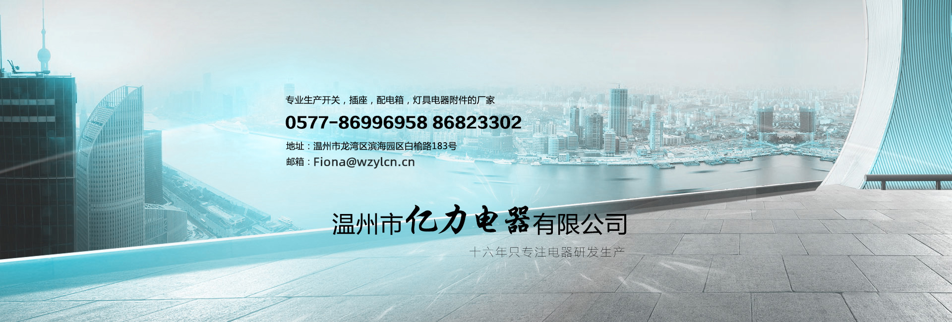 聯(lián)系我們創(chuàng)建于2003年的溫州市億力電器有限公司是專業(yè)生產(chǎn)開關(guān),插座,配電箱,燈具電器附件的廠家。產(chǎn)品暢銷南美、中東、非洲、東南亞、香港國內(nèi)外三十多個國家與地區(qū)。以優(yōu)良的品質(zhì)、合理的價格及良好的信譽(yù),受到客戶的一致好評